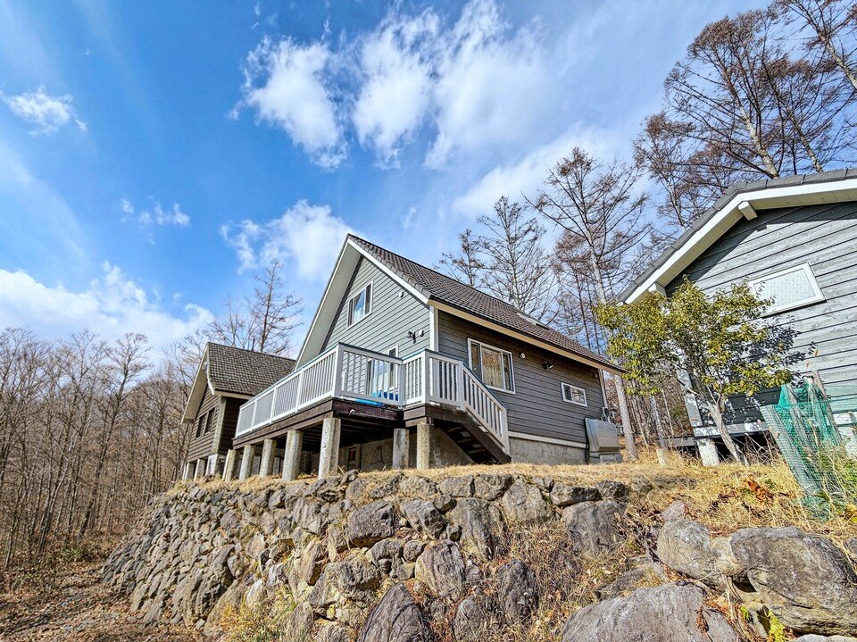 分譲地の入口からもほど近く、車通りも少ないゆったりとしたエリアに建つ別荘。緩やかな傾斜地に佇み、季節を感じながら過ごせる自然豊かな環境にありま…